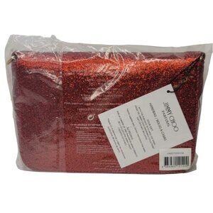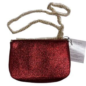 Jimmy Choo Crossbody Evening Purse Red Bag Sparkle Glitter Shimmer Gold Chain