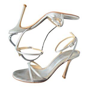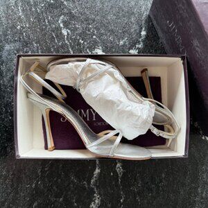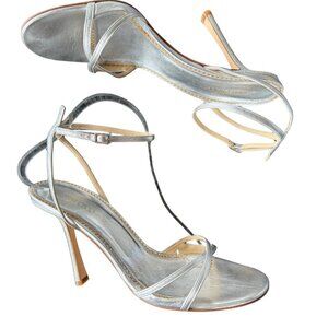Authentic Jimmy Choo Gloria Silver Ankle Strap Heels