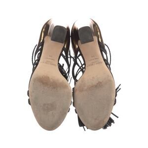 Jimmy Choo Diamond Black Satin Honey Gold Leather Sandals Tassels Heels Size 38