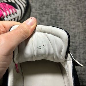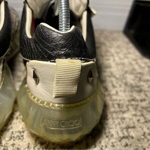 Jimmy Choo Diamond Black & White Zebra Print Lace-Up Sneakers. Please note that a Jimmy Xhoo size 42.5 translates to a US size 12.5. Photo of size chart posted above. Minimal signs of wear on the bottoms. In otherwise great preowned condition. Feel free to make a reasonable offer through the offer button!