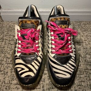 Jimmy Choo Diamond Black & White Zebra Print Lace-Up Sneakers Size 12