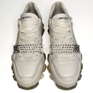 Jimmy Choo Diamond X Strap/F White Leather Low Top Crystal Sneakers EU 40 US 10
