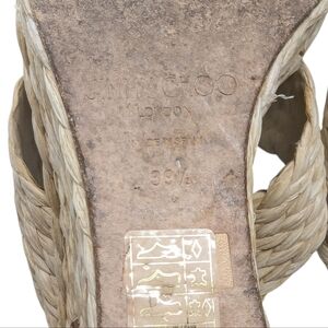 Jimmy Choo Dovina 100 Raffia Wedge JC Logo Sandal Size EU 39