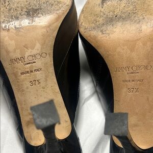 Sleek black leather mules by Jimmy Choo. Perfect for a chic look. pre-owned in excellent condition.