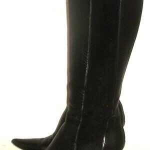 Jimmy Choo "Faith" Black Leather Rear Zip High Heel Boots w Suede Side Panel