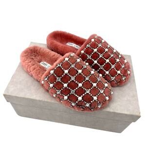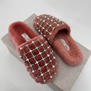 Jimmy Choo Fancy Crystal Blush Pearl Shearling Mules Slippers Size 6 NWT