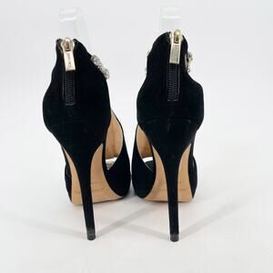 Jimmy Choo Black Suede Farah Crystal Trim Peep Toe Pump Sandal