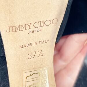 Jimmy Choo Farah Black Suede Crystal Trim Peep Toe Platform Pump Sandal IT 37.5