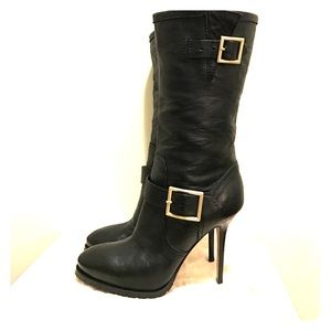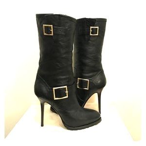 Jimmy Choo Galen Black Leather Stiletto Biker Boot