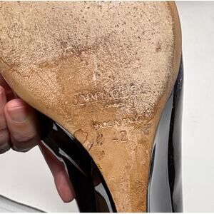 Jimmy Choo Gilbert Black Navy Patent Leather Almond Toe Wedge Heel Pumps Sz 42