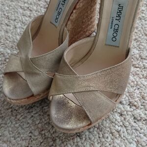 Jimmy Choo Glitter Phyllis Cross Strap wedges size 37.5