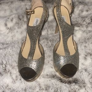 Jimmy Choo Gold Heels. Extremely shiny! Tried them on NEVER WORN!