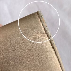 CONDITION: Pre-owned with visible wear to the leather—corner rubs, light scuffs, minor dents, and surface scratches (last 3 photos)
