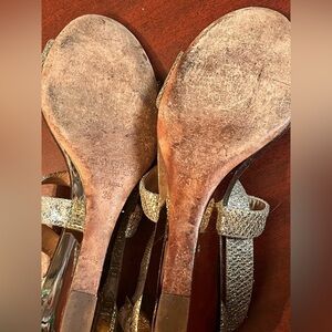 Jimmy Choo Gold/Silver Lurex Sz 39 Fabric Fearne Sandals Heels