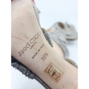 Jimmy Choo Grey Suede Collar Silver Studded Sandals Size 39.5