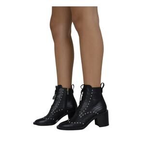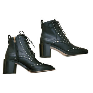 Jimmy Choo Hanah 65 Black Leather Pearl Studded Lace Up Combat Boots Ankle 8 38