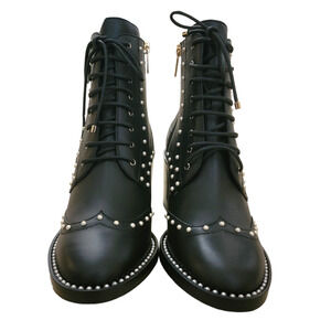 jimmy choo boots pearl studded combat black leather ankle lace up heeled
