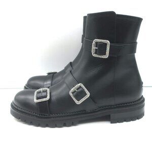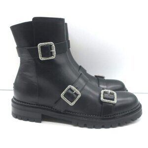 Jimmy Choo Hank Jewel Buckle Flat Ankle Boots Black Leather Size 39 NEW