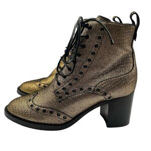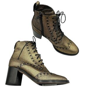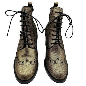 Jimmy Choo Hannah 65 Heeled Lace Up Boots in Gold Size 38.5