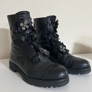Jimmy Choo Havana Floral Combat Boots with Crystals - Black Leather Size 37 / 7