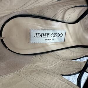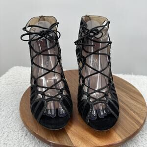 Jimmy Choo Heel Womens 8.5 Black Leather Lace up Peep Toe Snake Skin Gladiator