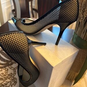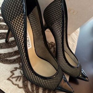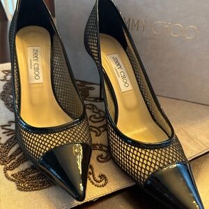 Jimmy Choo Black Patent Leather Mesh Pumps. Gently worn approximately 2-3 occasions. Beautiful and elegant shoe.
