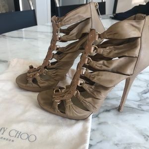 Jimmy Choo Heels Neutral Strappy Gladiator Caged Sandals