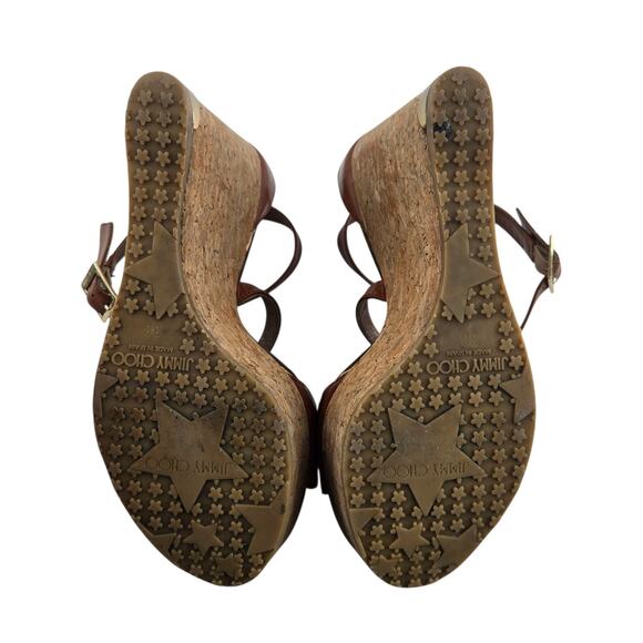 Jimmy Choo Heels sandals Womens 8 (38) Cork Wedge Platform Brown Leather Luxury