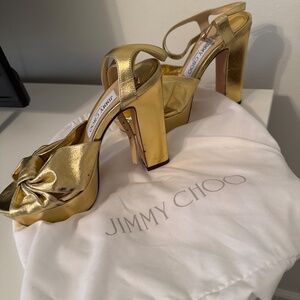 Jimmy Choo Heloise Metallic Ankle-Strap Platform Sandals