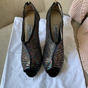 Jimmy Choo Hologram & Black Patent Peep-Toe Bootie