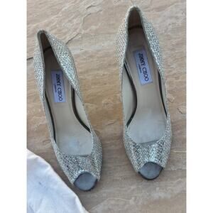 Jimmy Choo ISABEL Champagne Glitter Open Toe Pump Shoes EU Size 40 US 9.5 10 LH
