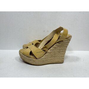 Jimmy Choo Italy Beige Leather Open Toe Wedge Espadrille Womens Size 7 US Heels
