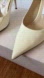 Chic ivory patent leather heels. Sleek pointed toe design. Perfect for elegant occasions.