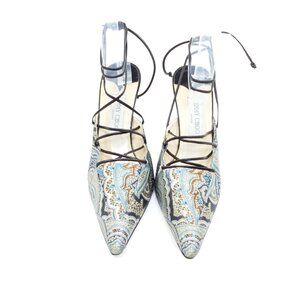 Jimmy Choo Jade Paisley Lace-Up Heels Brown Blue Leather Sole EUR 40 US 10