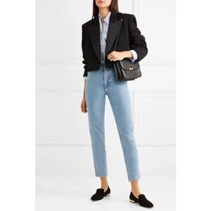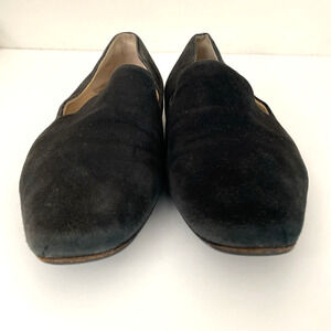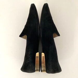 Jimmy Choo Jaida Black Suede Square Toe Smoking Slipper Flat Gold Heel 36 5.5