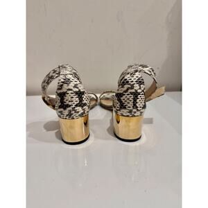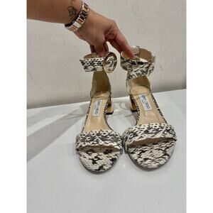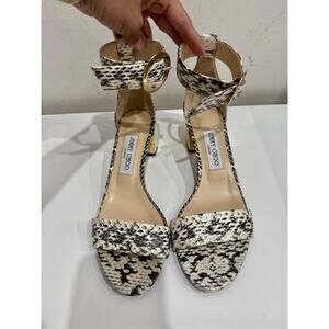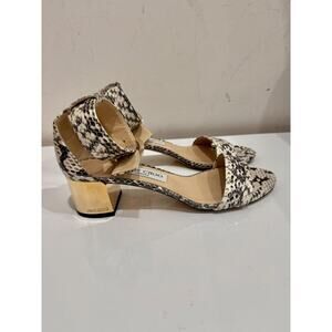 Jimmy Choo Jaimie Snakeprint Ankle Strap Gold Heel Sandals Cream/Black EU 37.5