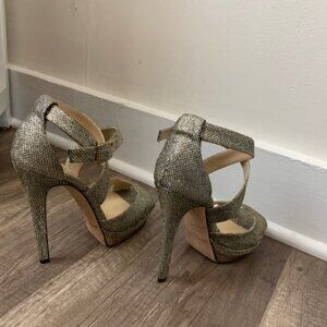 Jimmy Choo Kayak Gold Glitter Platform EU 37 US 7