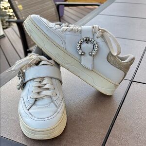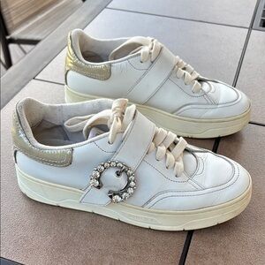 Jimmy Choo Ladies White Leather Silver Rhinestone C Sneakers-7