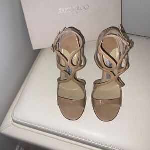 Jimmy Choo Lance Nude Patent leather sandal Heels size 35.5. Used a few times but in great condition. Comes with original box and dust bag.