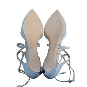 Gorgeous and perfect for a fall or winter wedding, pics do not do these justice as they sparkle gorgeous in the light. Strappy detailed front and double buckle closure with short 1.5 ( including heel tip) heel. Leather bottom. Perfect for a fancy dressy occasion!