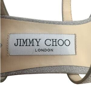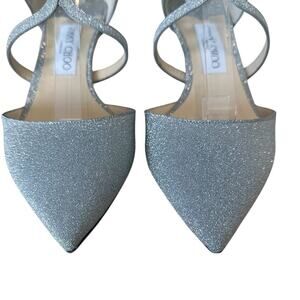 Jimmy Choo Lancer 35 Silver Glitter Pointed Toe Kitten Heel 39