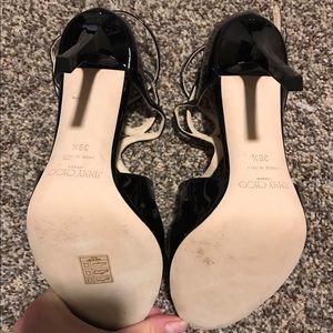 BRAND NEW NEVER WORN black Jimmy Choo strappy sandal. Gorgeous strappy black heels I love these heels and never got the chance to wear them! My ex bought them for me and now I'm need of some $ They do run small I am a 8.5 and fit into them comfortably. Email me for PayPal emilymariefarache@gmail.com may work a deal for you.