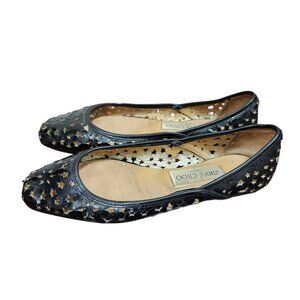 Jimmy Choo Laser Cut Pointed Toe Flats Black Patent Leather Shoes Size 36.5