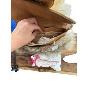 Brand new, never worn Jimmy Choo Leah crossbody bag, crafted from luxe tan leather and genuine fox fur. This rare designer piece retails for $3,650 at Neiman Marcus and features a statement buckle, adjustable strap, and artisan stitching. A stunning blend of bohemian elegance and luxury edge—perfect for spring outfits, Coachella, Easter brunch, or as a luxe Mother's Day gift.