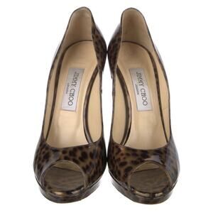 Jimmy Choo Leopard Animal Print Patent Leather Peep Toe Platform Pump IT 38 US 8
