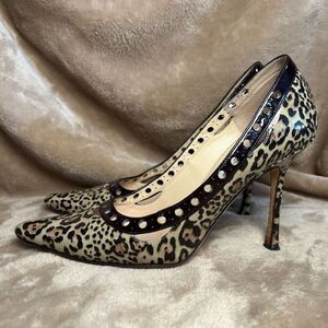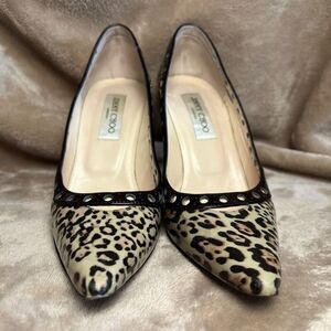 Jimmy Choo Leopard Slight Sparkle Cutouts Pumps 4" Heels Women's 37 US Size 7 :)
