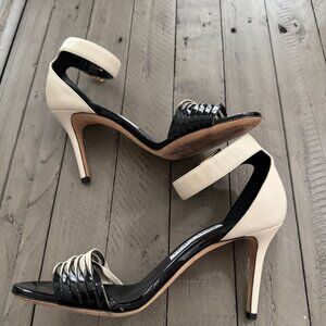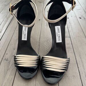 Jimmy Choo Livvi 85 Two-tone Leather Sandals Heels White Black Size 37.5 7.5