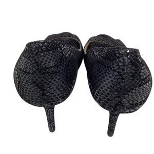 These stylish and sophisticated Jimmy Choo London heels feature a striking black snakeskin pattern and a chic peep-toe design, providing a luxurious touch to any wardrobe. The craftsmanship ensures quality and durability, making them a wise investment for those seeking elegance and comfort in high-end footwear.