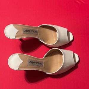 Jimmy Choo London White Patent Leather Heels Size 35 1/2 Slip On