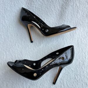Jimmy Choo London Black Women's 36.5 US 6.5 Patent Leather Dorsay Pumps Peep Toe